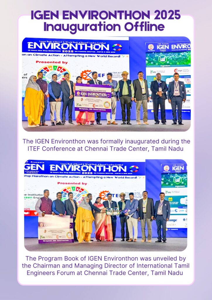 The event was formally inaugurated during the ITEF Conference at the Chennai Trade Centre, Tamil Nadu. On this occasion, the Program Book of IGEN Environthon was unveiled by the Chairman and Managing Director of the International Tamil Engineers Forum.
