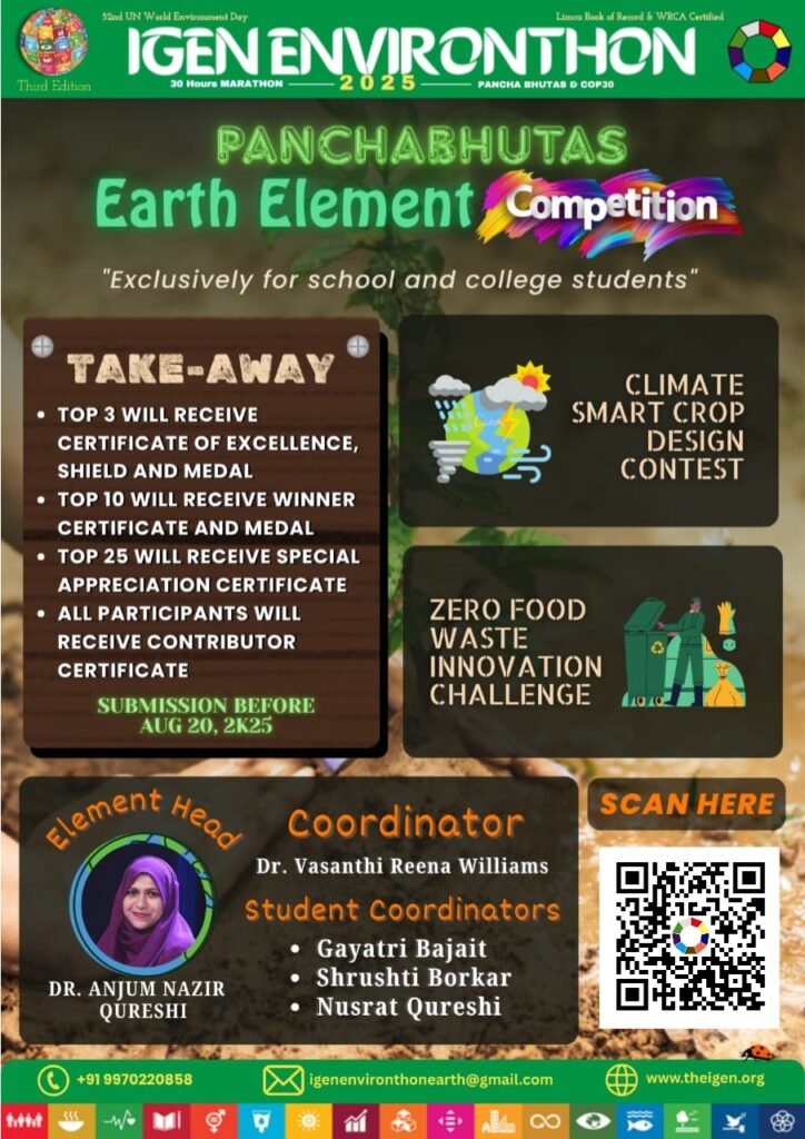 Join the PANCHABHUTAS – EARTH Element Competition under- IGEN ENVIRONTHON 2025 – A World Record Attempt 30-Hour Climate Marathon!