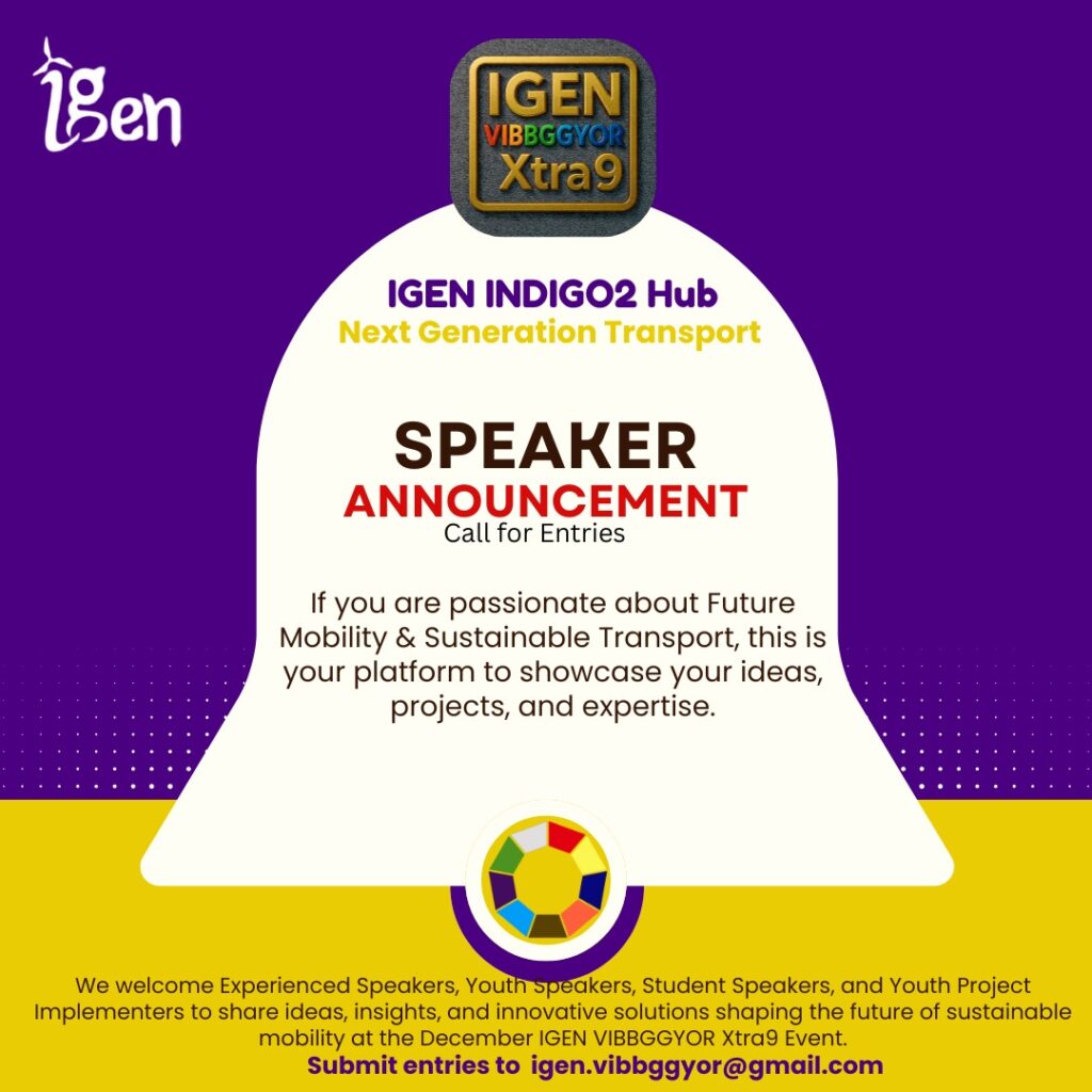 The Institution of Green Engineers (IGEN) invites inspiring voices, innovators, and change-makers to join us as Speakers for the upcoming IGEN VIBBGGYOR Xtra9 – Edition 2, under the theme Next Generation Transport curated by the IGEN Indigo2 Hub.