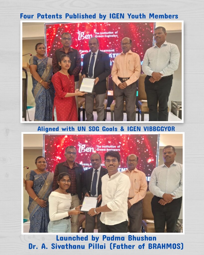Padma Bhushan Dr. A. Sivathanu Pillai (Father of BRAHMOS & Member, Board of Governors, The Institution of Green Engineers) formally launched the first four patents published by IGEN Youth Members, marking a significant milestone in youth-led innovation for sustainability.