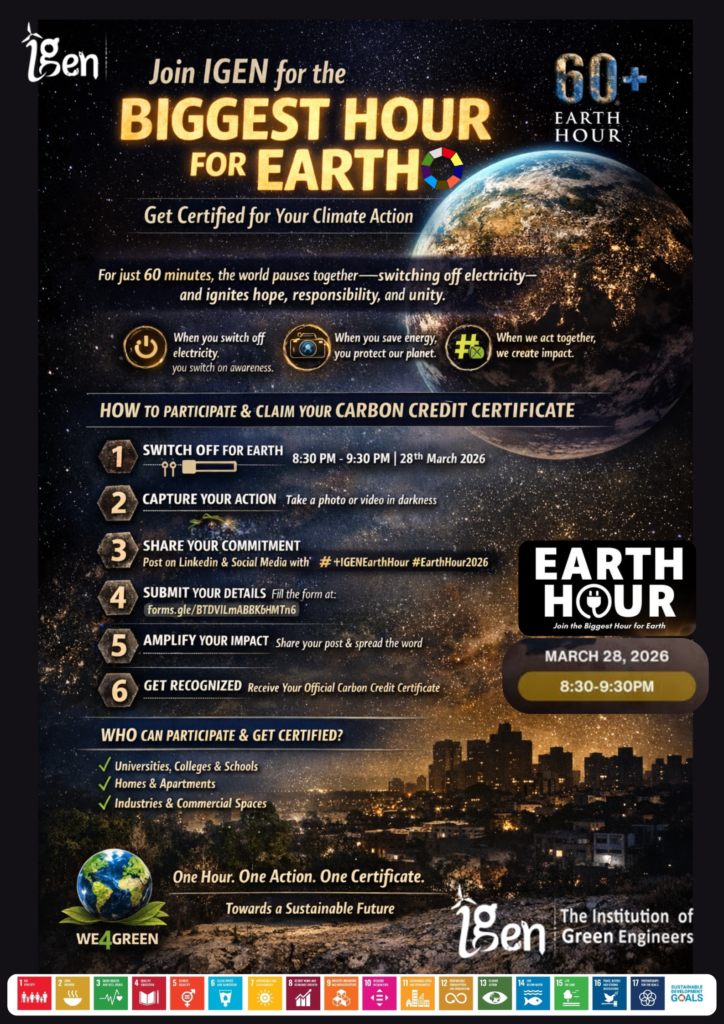 The Institution of Green Engineers (IGEN) warmly invites all the global citizens to stand with millions across the globe and become part of the Biggest Hour for Earth supporting #sdg7.