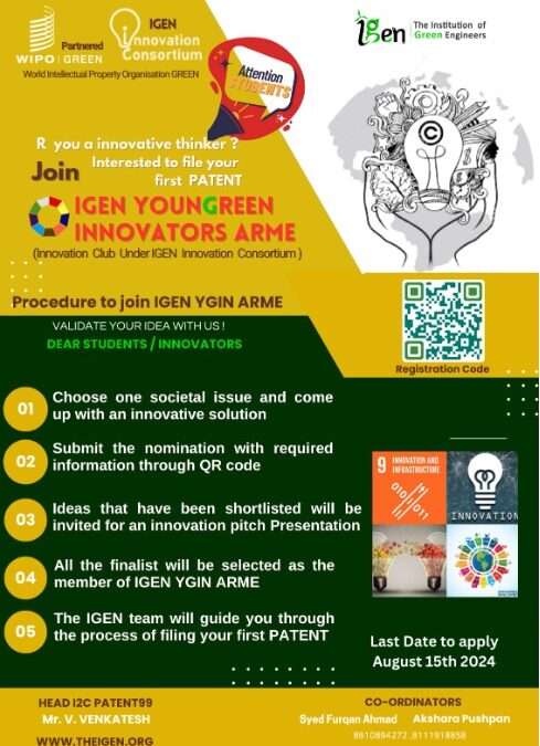 Join as the member of WIPO GREEN Partnered, IGEN YOUNGREEN INNOVATORS ARME and be part of I2C PATENT99 Cohort