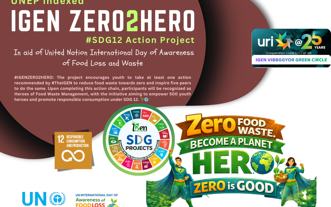 Certified under the UNEP International Day of Awareness of Food Loss and Waste, The Institution of Green Engineers (IGEN), in association with URI CC β IGEN VIBBGGYOR Green Circle, is pleased to launch the project βIGEN ZERO2HEROβ under the IGEN SDGProjects initiative, aligned with #SDG12 (Responsible Consumption and Production), with the objective of reducing food loss and waste towards zero by encouraging individuals, youth, and communities to adopt responsible consumption practices and take collective action for a more sustainable future. ππ±