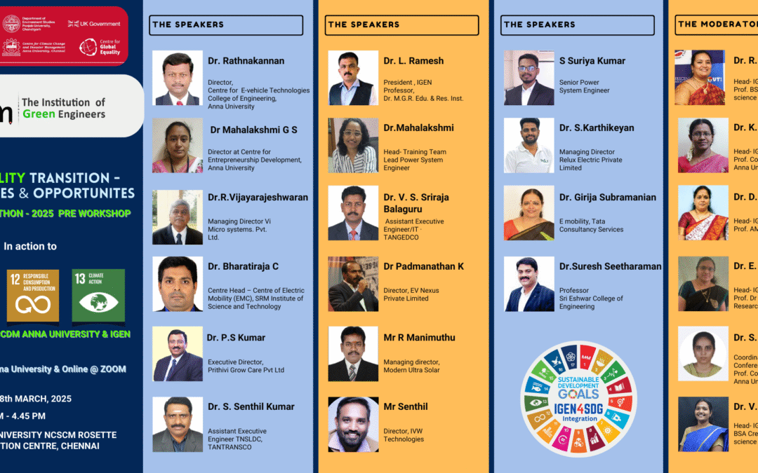 The Centre for Climate Change and Disaster Management(CCCDM) , Anna University, and Climate Compatible Growth (CCG) in association with The Institution of Green Engineers (IGEN) cordially invite all academic members, industry professionals, and students to participate in a One-Day Workshop on “E-Mobility Transition: Challenges and Opportunities”.