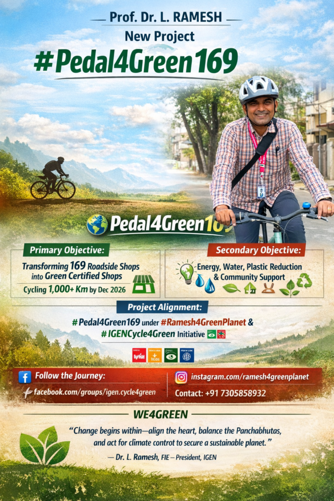 “Change begins within—align the heart, balance the Panchabhutas, and act for climate control to secure a sustainable planet.” — Dr. L. Ramesh, FIE – President, IGEN
