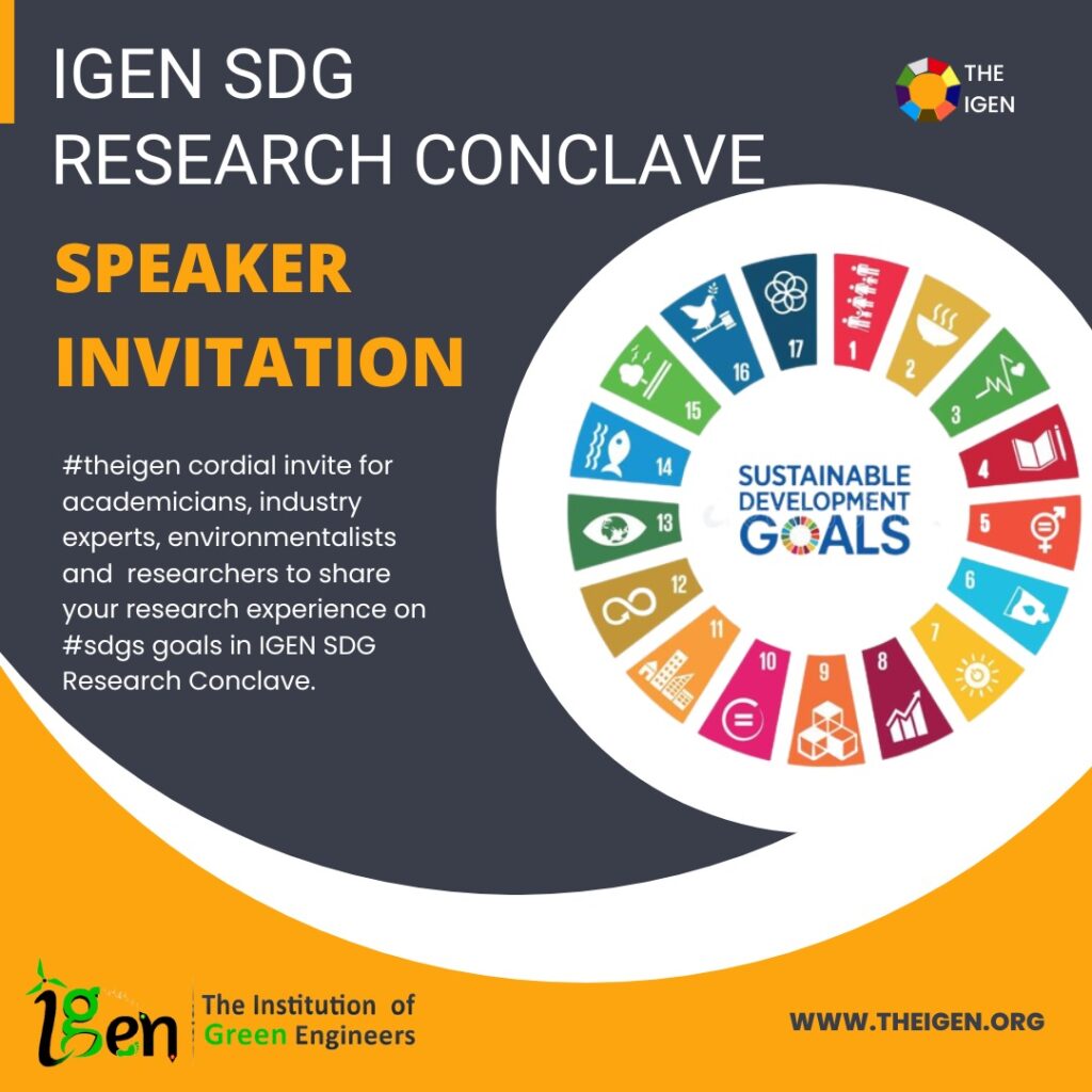 IGEN SDG RESEARCH CONCLAVE – Academics, industry experts, environmentalists, and researchers are cordially invited by #theigen to participate in the IGEN SDG Research Conclave and contribute their research on the #sdgs goals to global green community.
