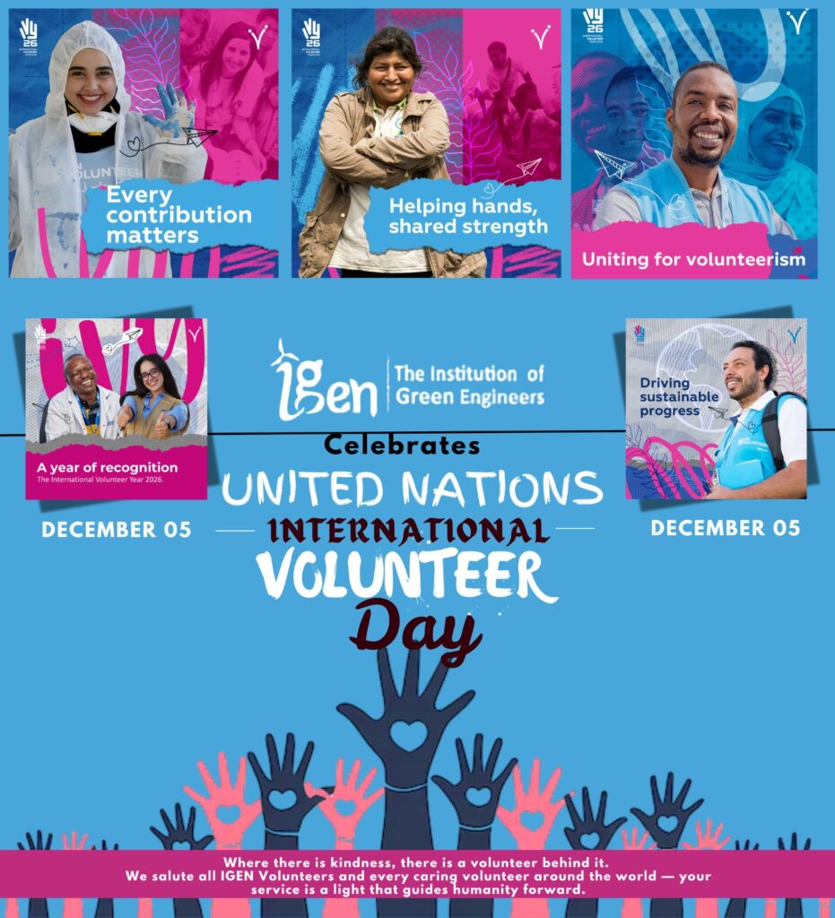 Today, IGEN — The Institution of Green Engineers proudly celebrates the United Nations International Volunteer Day and recognizes the spirit of selfless service that fuels global change.