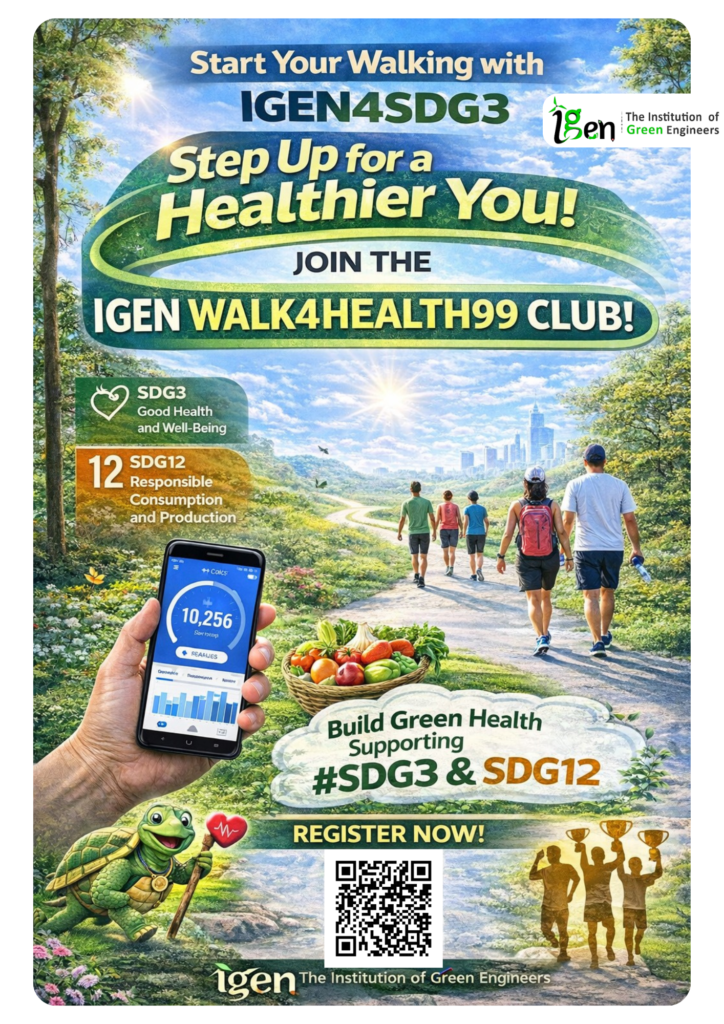 The Institution of Green Engineers (IGEN), through the IGEN WALK4HEALTH initiative, aims to build Green Health among citizens supporting #sdg3 #sdg12 by encouraging daily walking, promoting healthy food choices, and cultivating positive food habits. The project focuses on transforming everyday lifestyles into healthier routines through simple, consistent actions.